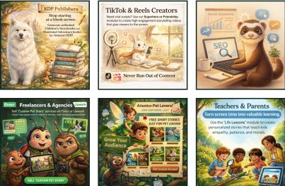 Erstellen Sie virale Inhalte & Bestseller in Sekunden. Mit Pet Story Architect besitzen Sie die Struktur, den Prozess und eine kuratierte Reihe von Aufforderungen, professionelle, herzberührende Haustier-geschichten schneller als je zuvor zu veröffentlichen. Ohne Schreibfähigkeiten oder Designerfahrung